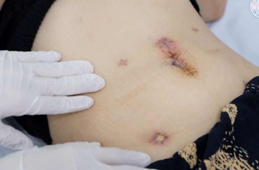 Bệnh nhân sau mổ được các bác sĩ thăm khám
