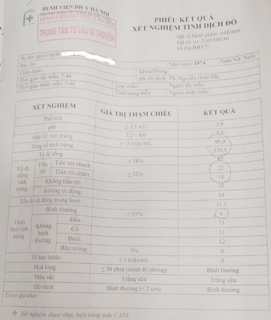 Kết quả xét nghiệm tinh dịch đồ của bệnh nhân.