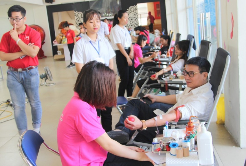 Cán bộ, lãnh đạo các đơn vị nhà trường tham gia hiến máu