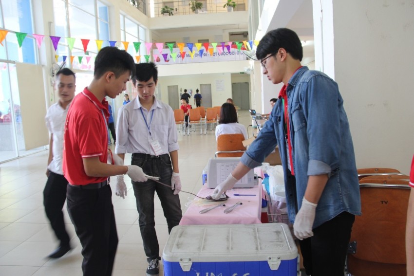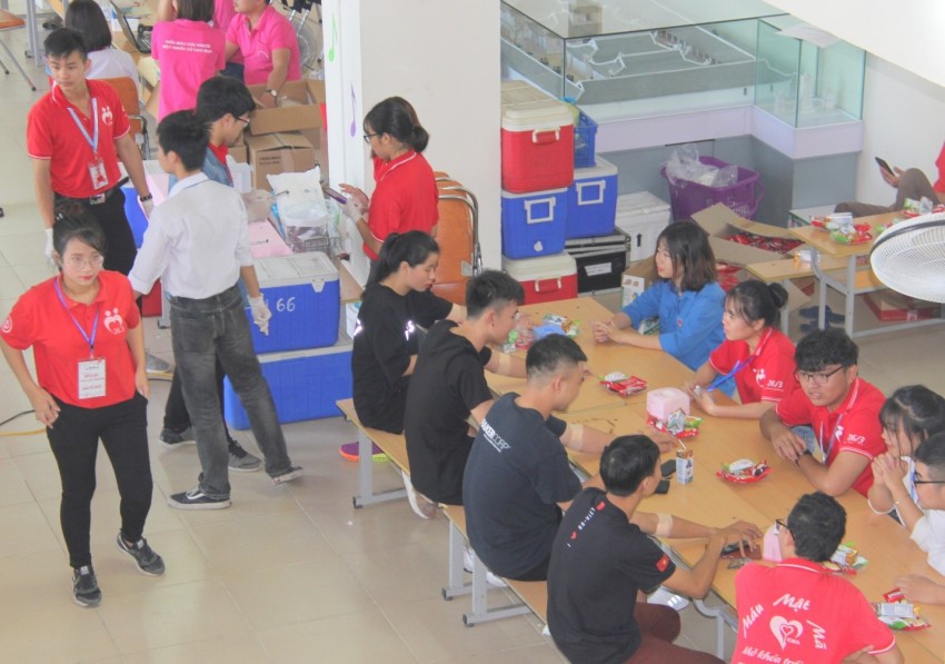 Đông đảo sinh viên nhà trường tham gia hiến máu