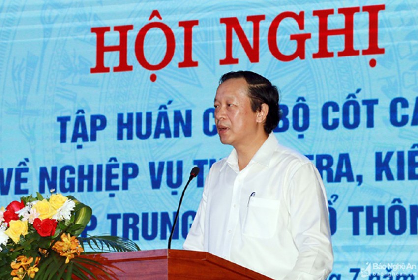 Ngày 9/7, tại Trường Đại học Vinh, Bộ Giáo dục và Đào tạo tổ chức Hội nghị tập huấn cán bộ chủ chốt của Bộ về nghiệp vụ thanh tra, kiểm tra Kỳ thi tốt nghiệp THPT năm 2020. TS.Vũ Tuấn Lâm – Phó Giám đốc Học viện cùng Lãnh đạo Văn phòng Học viện, Trung tâm Khảo thí và Đảm bảo Chất lượng Giáo dục đã tham gia Hội nghị. Theo kế hoạch, hội nghị tập huấn sẽ diễn ra trong 2 ngày với các nội dung: Phổ biến quy chế thi tốt nghiệp THPT và hướng dẫn công tác tổ chức thi, tổ chức thanh tra, kiểm tra thi tốt nghiệp; hướng dẫn nghiệp vụ thanh tra, kiểm tra thi; tập huấn về một số thiết bị công nghệ gian lận trong coi thi và tình huống thường gặp trong hoạt động thanh tra, kiểm tra.