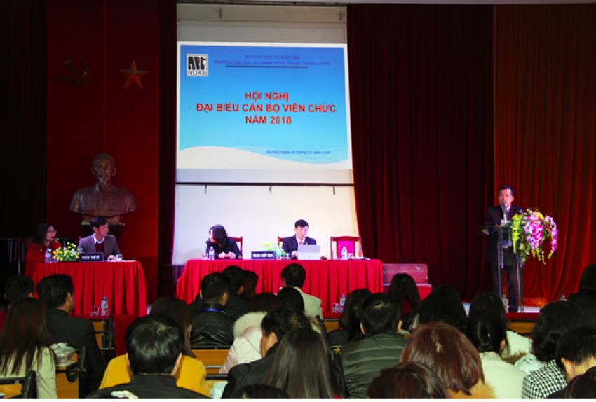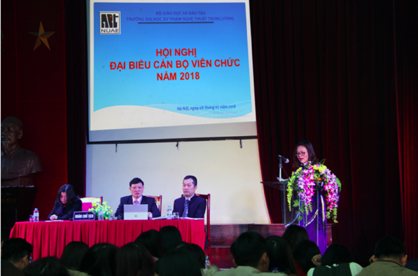 Nhằm tổng kết, đánh giá quá trình hoạt động năm học 2016 - 2017 và đề ra phương hướng nhiệm vụ của năm học 2017 - 2018, ngày 08/02/2018, Trường ĐHSP Nghệ thuật TW đã tổ chức Hội nghị đại biểu cán bộ, viên chức. Tham dự Hội nghị có Đảng ủy, Ban giám hiệu và các cán bộ, viên chức Nhà trường.
