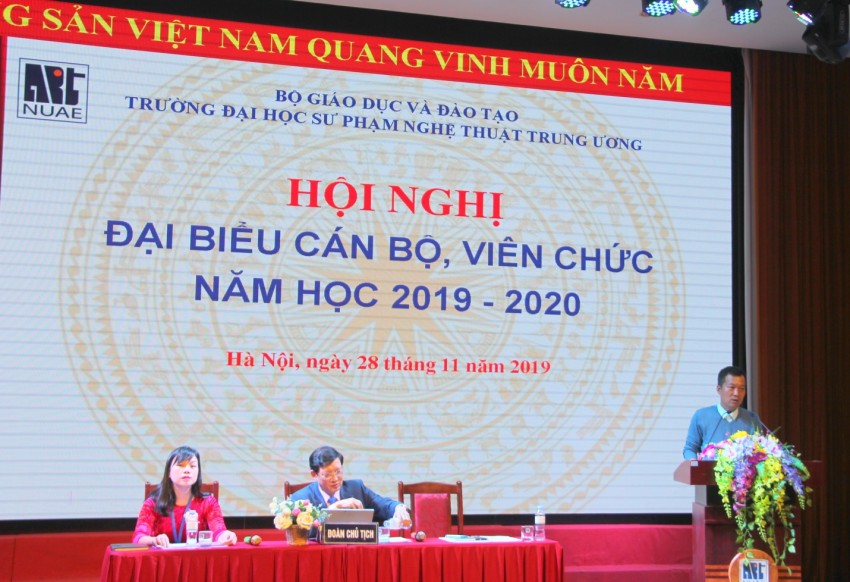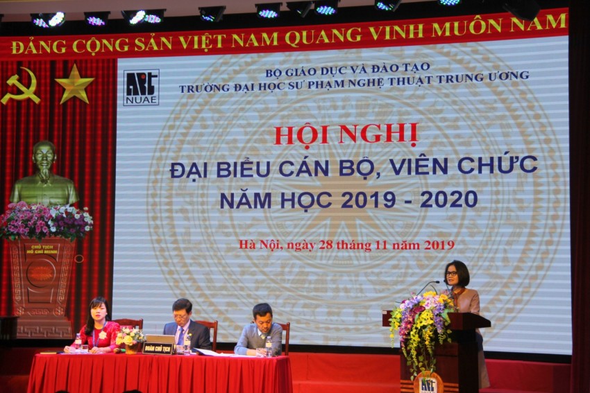 Nhằm tổng kết, đánh giá quá trình hoạt động năm học 2018 - 2019 và đề ra phương hướng nhiệm vụ của năm học 2019 - 2020, ngày 28/11/2019, Trường ĐHSP Nghệ thuật TW đã tổ chức Hội nghị đại biểu cán bộ, viên chức. Tham dự Hội nghị có Đảng ủy, Ban giám hiệu và các cán bộ, viên chức Nhà trường.