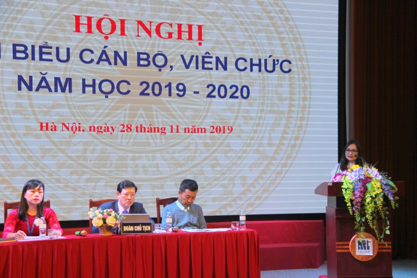 Cũng tại Hội nghị, đại diện đơn vị các khoa, phòng ban đã trình bày tham luận với nhiều ý kiến xác đáng, thể hiện sự quan tâm sâu sắc, trách nhiệm cao của tập thể các đơn vị và từng cá nhân, cán bộ, giảng viên đối với hoạt động chung của Nhà trường. Các ý kiến phát biểu tại Hội nghị đều đánh giá cao những kết quả Nhà trường đã làm được trong năm học qua đồng thời bày tỏ ý kiến mong muốn Nhà trường đẩy mạnh hơn nữa việc đổi mới nội dung và phương pháp giảng dạy, nâng cao điều kiện dạy và học để góp phần tăng hiệu quả học tập cho sinh viên.