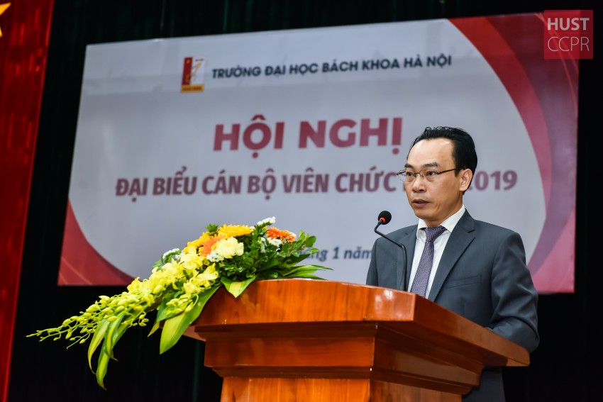 Hội nghị đại biểu cán bộ viên chức Trường ĐHBK Hà Nội năm 2019 đánh dấu những đổi mới, ứng dụng hiệu quả công cụ Office 365, tạo hiệu ứng lan tỏa trong công tác quản lý hành chính của Nhà trường. Trước đó, bản báo cáo tổng kết của Hiệu trưởng đã được đưa lên TEAMS để mọi CBVC có thể đọc, góp ý trên tinh thần minh bạch, dân chủ. Tại Hội nghị, các đại biểu trả lời khảo sát trực tuyến, đánh giá mức độ hài lòng của cán bộ về hiệu quả triển khai các chủ trương, chính sách, về môi trường làm việc tại ĐHBK Hà Nội.