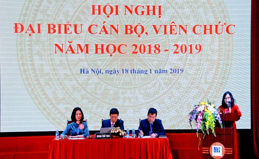 Tiếp nối chương trình Hội nghị là các báo cáo về một số mảng công tác quan trọng của Nhà trường như báo cáo công tác thu, chi tài chính của phòng Kế hoạch Tài chính và Quản trị Thiết bị, báo cáo công tác thanh tra của Ban Thanh tra nhân dân trong năm 2018 và chương trình công tác năm 2019.