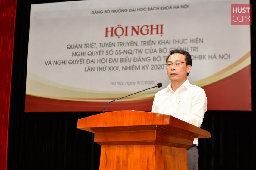 Cũng trong hội nghị, TS. Bùi Đức Hùng – Phó Bí thư thường trực Đảng uỷ trường – đã quán triệt, tuyên truyền và triển khai thực hiện Nghị quyết số 55-NQ/TW ngày 11/2/2020 của Bộ Chính trị về “Định hướng chiến lược phát triển năng lượng quốc gia Việt Nam đến năm 2030, tầm nhìn đến năm 2045”.