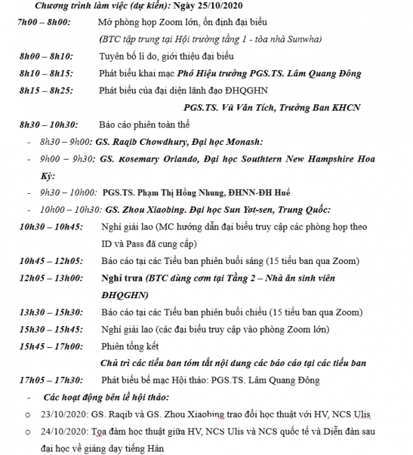 Nội dung, chương trình làm việc và các hoạt động bên lề hội thảo: