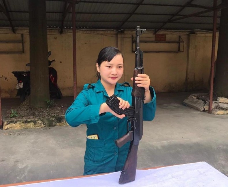 Đồng chí Lương Thị Đào (khoa Văn hóa Nghệ thuật) tham gia nội dung kỹ thuật tháo lắp súng