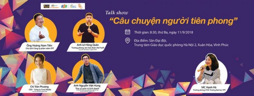 Người tiên phong ở đây là ai? Là tập đoàn FPT, là anh Bình, anh Ngọc….Người tiên phong ở đây là anh Tiến, Hùng, Phượng, Quân… họ tiên phong trong chính quan điểm sống, cá tính sống trong công việc học tập và trưởng thành, nhất là trong giai đoạn học tập tại trường Đại học FPT cho đến bây giờ…