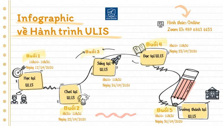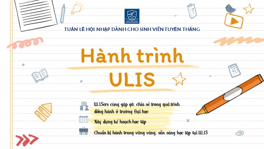 Ngoại ngữ, ĐHQGHN, Nhà trường thông báo kế hoạch học tập trong Tuần lễ hội nhập có tên gọi “Hành trình ULIS” dành cho sinh viên tuyển thẳng và ƯTXTT Đại học như sau: