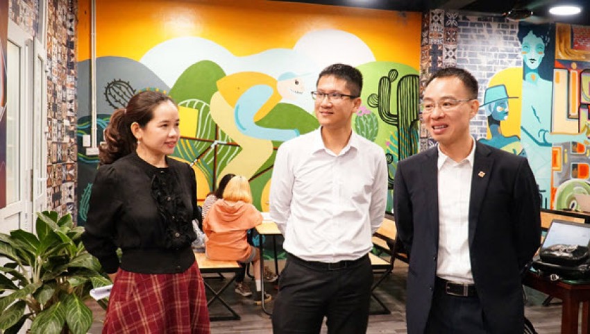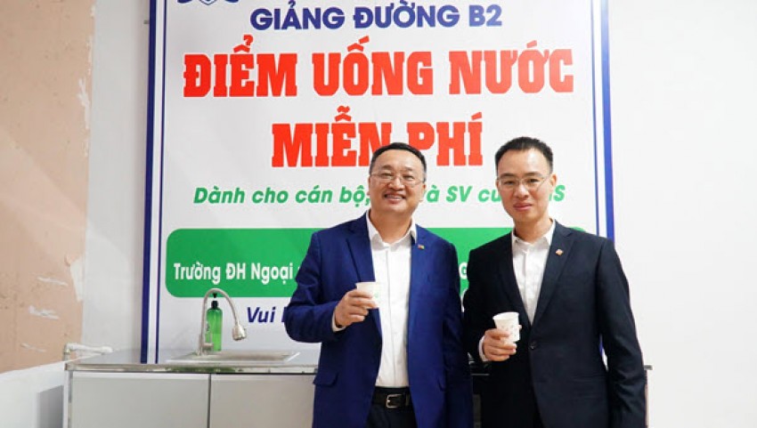 Khép lại chương trình, đoàn lãnh đạo và cán bộ hai bên đã đi tham quan Không gian mở và Điểm uống nước miễn phí tại giảng đường B2. Đại diện Nhà trường và Ngân hàng đã kéo băng, chính thức khai trương Không gian mở.