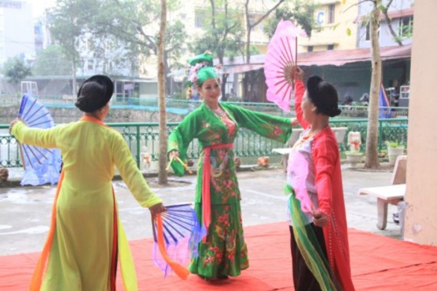 Các nghệ sĩ CLB Hoa Sen biểu diễn hát văn.