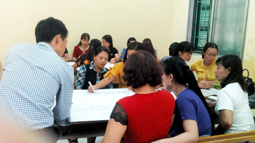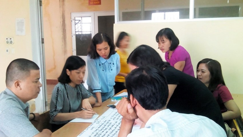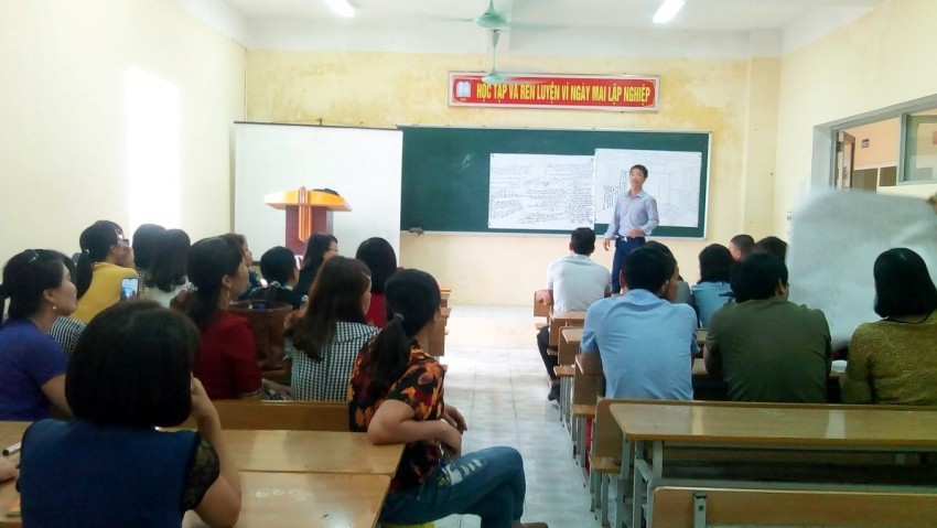 Sinh viên hệ VLVH tại CĐVHNT Thái bình tương tác nhóm do giảng viên NUAE hướng dẫn.