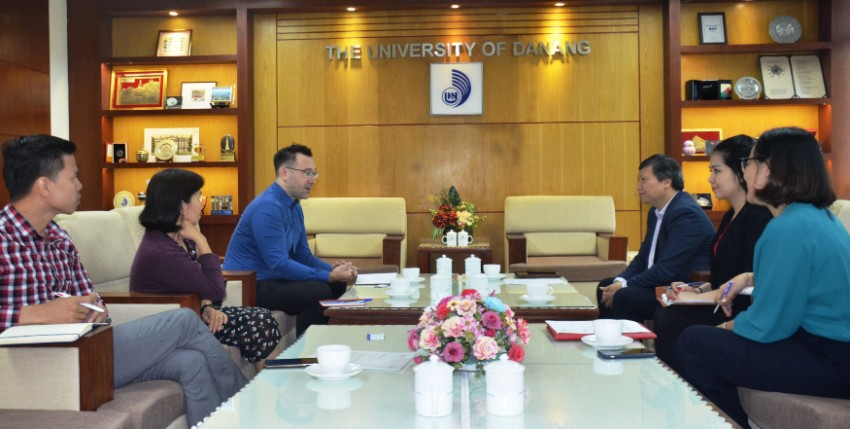 Q.Giám đốc Viện Pháp tại Đà Nẵng Samuel Delameziere đã chia sẻ với lãnh đạo ĐHĐN về việc triển khai hợp tác giữa Trường ĐH Sư phạm Kỹ thuật-ĐHĐN với Viện Khoa học Ứng dụng Quốc gia (INSA, Institut National de Sciences Appliquees, từ tháng 9/2018 đến nay) và mong muốn lãnh đạo ĐHĐN tạo điều kiện để tiếp tục phát triển hợp tác với Nhà trường cũng như các trường ĐH thành viên khác.
