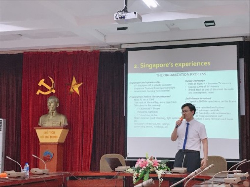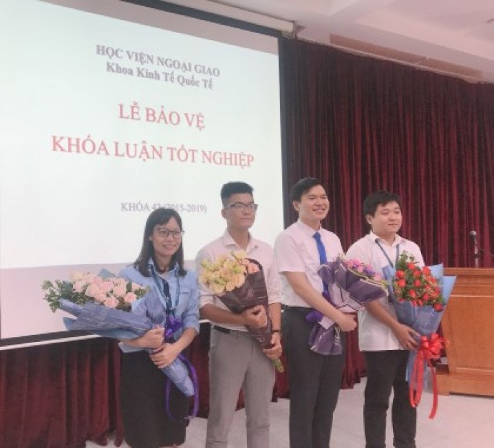 Sinh viên Nguyễn Đức Phúc – sinh viên duy nhất viết và bảo vệ khóa luận bằng tiếng Anh của khoa Kinh tế Quốc tế khóa 42 – đã gây ấn tượng mạnh với Hội đồng nhờ đề tài mới mẻ, mang tính thời sự, liên quan đến Giải đua xe Công thức 1 sẽ được tổ chức tại Hà Nội vào năm 2020 “Socio-economic implications of organizing the F1 Grand Prix: Experience from regional states and practical application for Vietnam”.