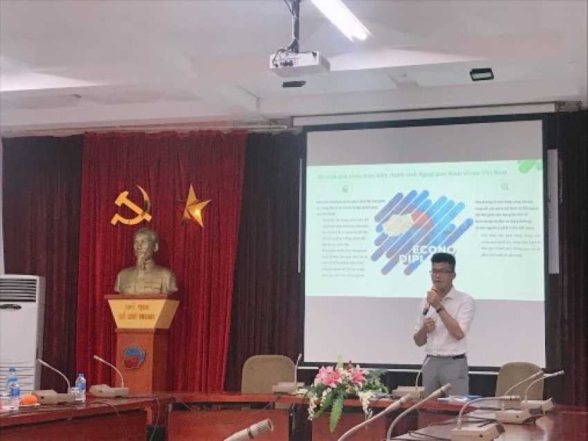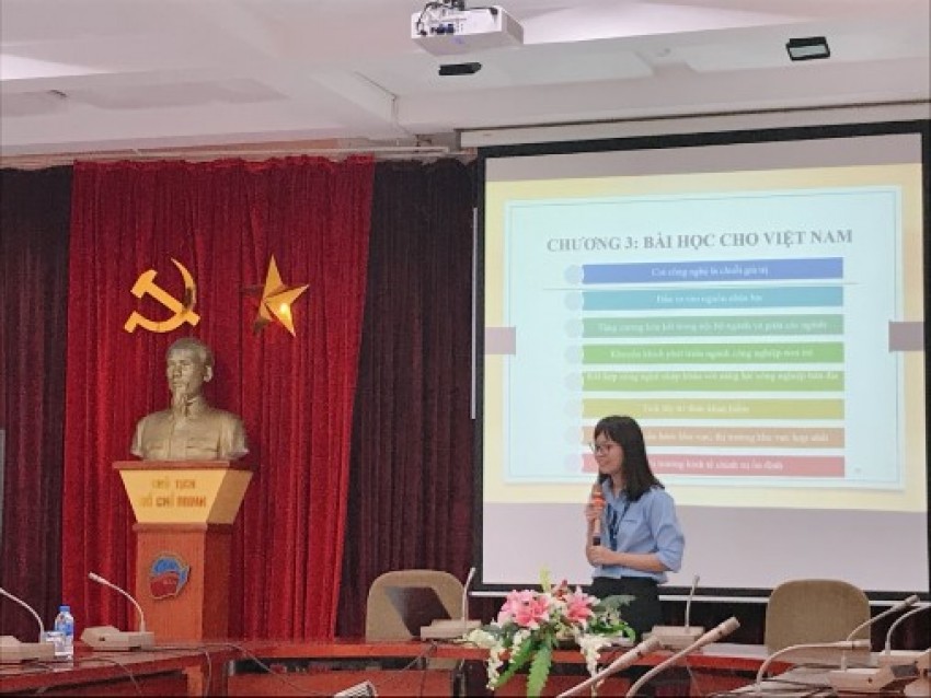 Sinh viên Trần Văn Hải với đề tài “Vai trò của Ngoại giao kinh tế đối với nền kinh tế Hàn Quốc”. Dù đây là một đề tài khó do không có nhiều tài liệu phục vụ cho quá trình nghiên cứu nhưng PGS.TS Nguyễn Văn Lịch, đồng thời cũng là giảng viên hướng dẫn, đã ghi nhận sự nỗ lực đào sâu tìm tòi, không ngại khó ngại khổ của Hải.