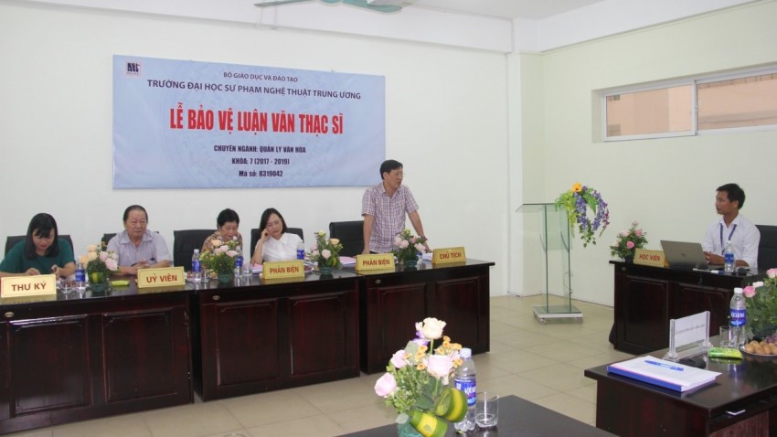 Nhằm đánh giá kết quả học tập của học viên, sáng ngày 16/8/2019 tại Phòng bảo vệ luận văn, khoa Sau đại học, Trường ĐHSP Nghệ thuật TW đã tổ chức Lễ bảo vệ luận văn Thạc sĩ khóa 7 - Chuyên ngành Quản lý văn hóa.