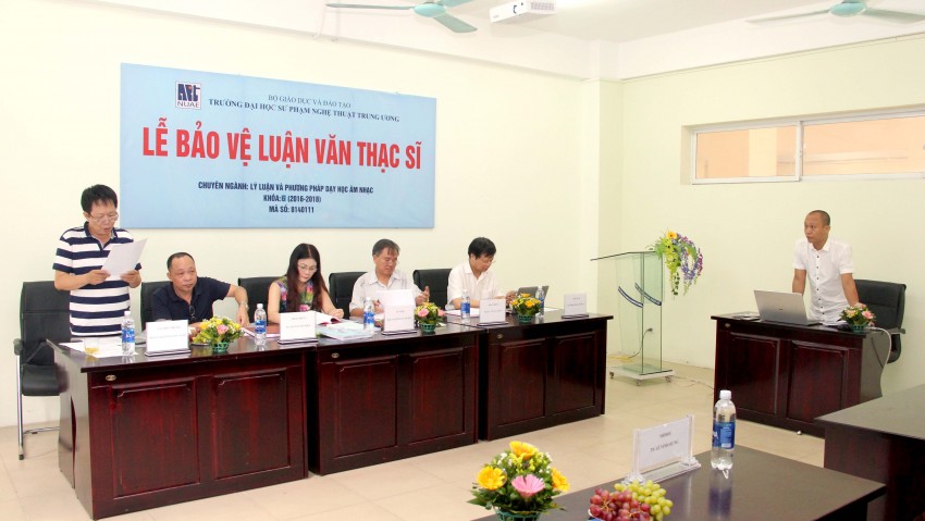 Nhằm đánh giá kết quả học tập của học viên, sáng ngày 10/7/2018, tại Phòng bảo vệ luận án, Khoa Sau Đại học, Trường ĐHSP Nghệ thuật TW đã tổ chức Lễ bảo vệ luận văn Thạc sĩ, k6 – chuyên ngành Lý luận và Phương pháp dạy học Âm nhạc.