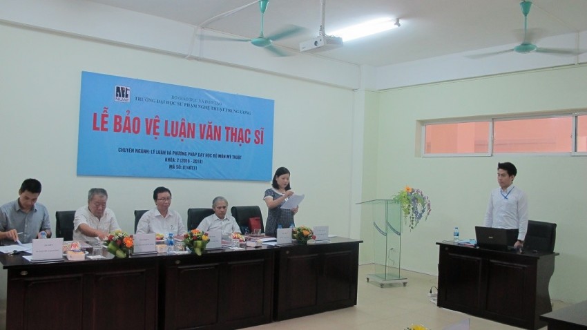 Nhằm đánh giá kết quả học tập của học viên, sáng ngày 20/8/2018, tại Phòng bảo vệ luận văn, khoa Sau Đại học, Trường ĐHSP Nghệ thuật TW đã tổ chức Lễ bảo vệ luận văn Thạc sĩ khóa 2 - Chuyên ngành Lý luận và Phương pháp dạy học bộ môn Mỹ thuật.