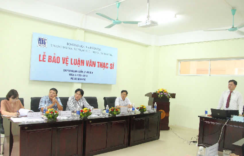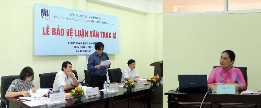 Điều hành Lễ bảo vệ luận văn có: TS. Đào Đăng Phượng - Chủ tịch Hội đồng; Các thành viên khác: PGS.TS. Võ Quang Trọng; PGS.TS. Trịnh Thị Minh Đức; PGS.TS. Bùi Hoài Sơn; PGS.TS. Nguyễn Hữu Thức; TS. Nguyễn Thị Phương Thảo (Phản biện 1, Phản biện 2, Ủy viên và Thư kí).