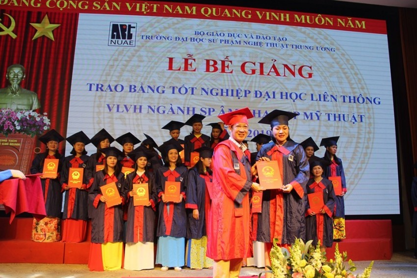 Sáng 19/10/2019, Trường ĐHSP Nghệ thuật TW đã trang trọng tổ chức Lễ bế giảng, trao bằng tốt nghiệp đại học liên thông vừa làm vừa học ngành Sư phạm Âm nhạc (SPÂN), Sư phạm Mĩ thuật (SPMT) năm 2019. PGS.TS. Đào Đăng Phượng đã tham dự và phát biểu chúc mừng. Tham dự còn có lãnh đạo các đơn vị, giảng viên và các tân cử nhân nhận bằng tốt nghiệp.