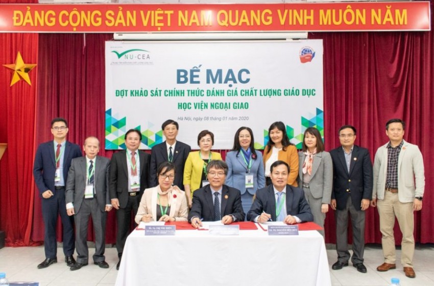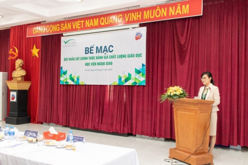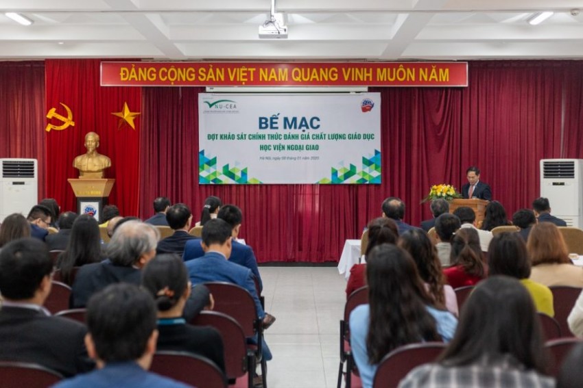 Ngày 08/1, tại Học viện Ngoại giao đã diễn ra Lễ Bế mạc Chương trình khảo sát chính thức của Đoàn chuyên gia Đánh giá ngoài. Sau 6 ngày làm việc nghiêm túc, trách nhiệm, chuyên nghiệp và hiệu quả của các chuyên gia và toàn thể cán bộ, nhân viên, giảng viên, sinh viên Học viện Ngoại giao, Đoàn Đánh giá ngoài đã đưa ra báo cáo sơ bộ về đảm bảo chất lượng giáo dục tại Học viện Ngoại giao.
