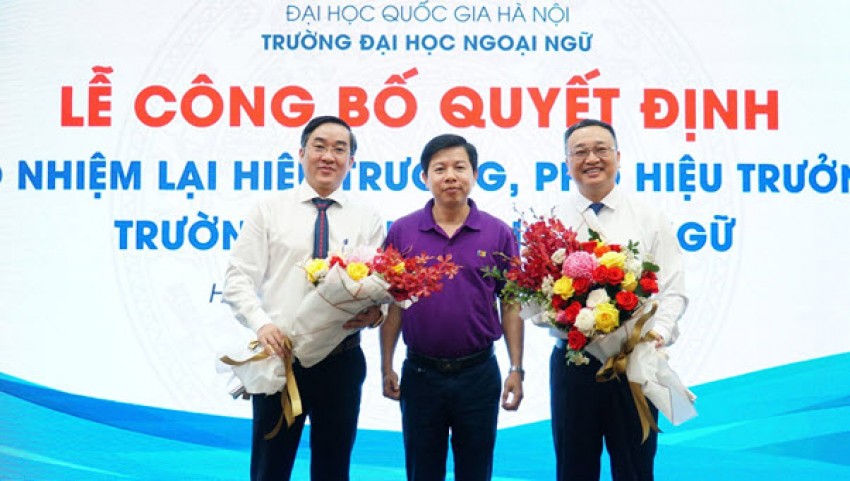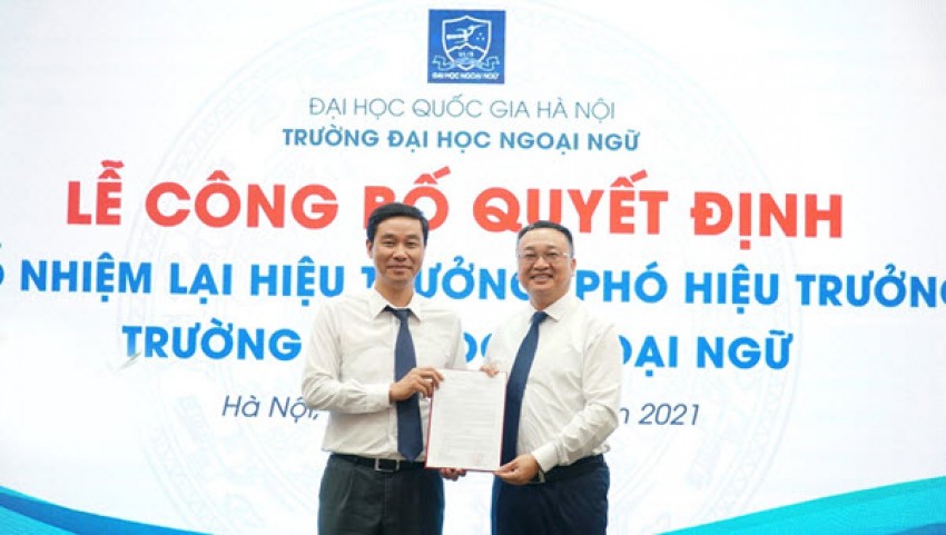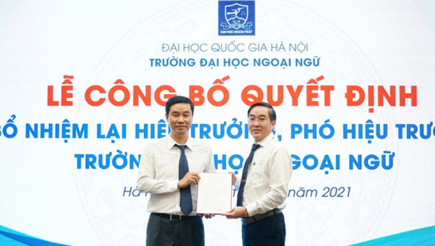 Ngày 14/4/2021, tại hội trường Sunwah đã diễn ra Lễ công bố quyết định bổ nhiệm lại Hiệu trưởng, Phó Hiệu trưởng Trường Đại học Ngoại ngữ, Đại học Quốc gia Hà Nội.