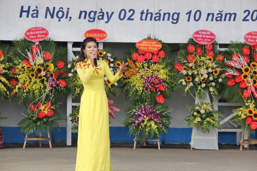 Chung niềm vui của ngày khai trường, đại diện giảng viên, NSƯT.ThS. Trần Mai Tuyết - Trưởng khoa Thanh nhạc và em Hà Kiều Anh - K7A Thanh nhạc - đại diện sinh viên đã chia sẻ về quá trình công tác, học tập cũng như bày tỏ những cảm xúc vui mừng của mình trong ngày khai giảng.