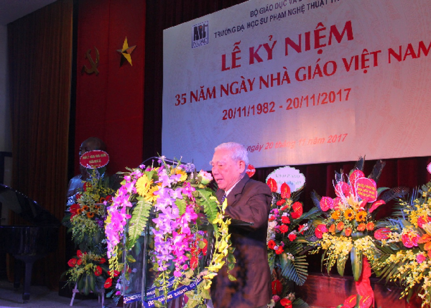 Thay mặt cho các cán bộ, giảng viên đã từng công tác tại Trường, thầy Trương Đình Nguyên - nguyên Hiệu trưởng Trường Sư phạm Thể dục - Nhạc họa Trung ương đã bày tỏ cảm xúc của mình trong ngày lễ tôn vinh nghề nhà giáo, khi được gặp lại các thế hệ đồng nghiệp, các lớp sinh viên, ôn lại những tháng ngày cùng công tác trong một mái trường. Với tình cảm của một nhà giáo gắn bó với Trường từ những ngày đầu mới thành lập, thầy Trương Đình Nguyên bày tỏ mong muốn tập thể cán bộ, giảng viên Nhà trường luôn nêu cao tinh thần đoàn kết, gắn bó cùng Đảng ủy, Ban giám hiệu; phấn đấu, làm tròn trọng trách của Trường - là đơn vị hàng đầu cả nước trong sự nghiệp đào tạo, bồi dưỡng giáo viên nghệ thuật.
