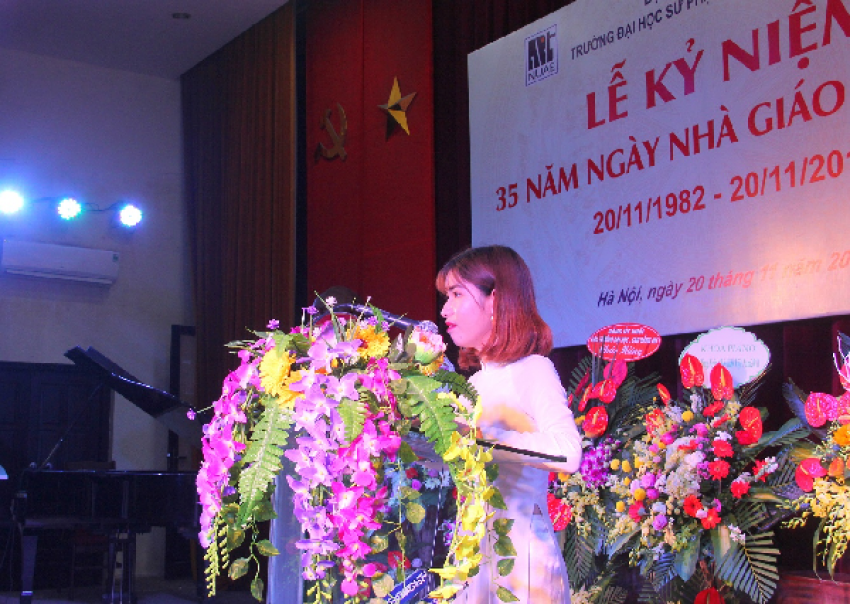 Lễ kỷ niệm cũng là dịp cho sinh viên Nhà trường được bày tỏ tình cảm với các thầy cô giáo. Đại diện cho sinh viên toàn trường, sinh viên Lê Thị Trà My - K9 Quản lý Văn hóa đã bày tỏ lời tri ân tới các thầy cô giáo. Thay mặt cho sinh viên Nhà trường, Lê Thị Trà My hứa sẽ cố gắng học tập thật tốt để trở thành người có ích cho xã hội, không phụ lòng mong mỏi và công ơn của thầy cô.