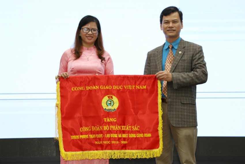 Các Phó Giám đốc ĐH Đà Nẵng và Hiệu trưởng các trường thành viên trao thưởng cho sinh viên xuất sắc trong năm học 2018-2019