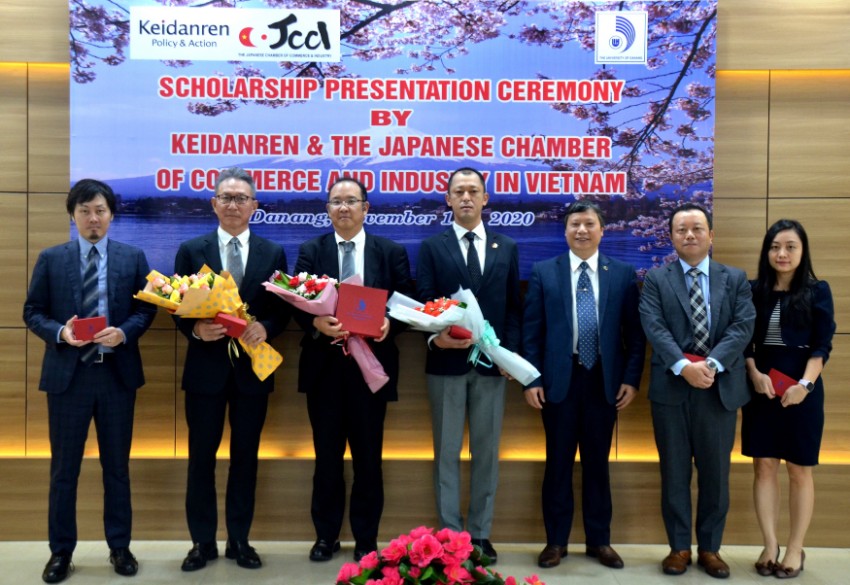 Đại diện lãnh đạo Keidairen, JCCI Nhật Bản và ĐHĐN đã trao 20 suất học bổng (300USD/suất) cho 20 SV ĐHĐN (04 SV Trường ĐH Bách khoa, Trường ĐH Kinh tế, Trường ĐH Ngoại ngữ, Trường ĐH Sư phạm kỹ thuật, mỗi trường cùng có 03 SV, 02 SV Trường ĐH Công nghệ thông tin và Truyền thông Việt-Hàn, Viện Nghiên cứu và Đào tạo Việt-Anh và Khoa Y dược cùng có 01 SV nhận học bổng).