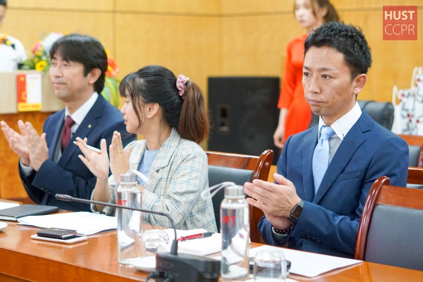 Ông Kiyotoshi Araki (phải), phó tổng giám đốc công ty Sekisho Group chuyên cung cấp dịch vụ nhân sự, tại lễ ký hợp đồng tài trợ phát triển hoạt động thể thao và kỹ năng mềm cho sinh viên Đại học Bách khoa Hà Nội ngày 27/10. Ảnh: CCPR-Hà Kim.