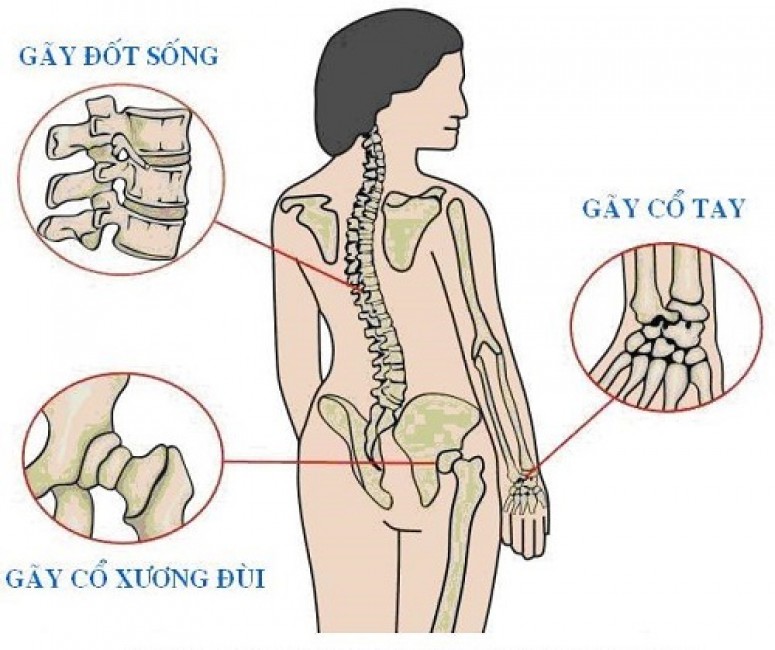 Những vị trí hay bị gãy do loãng xương.