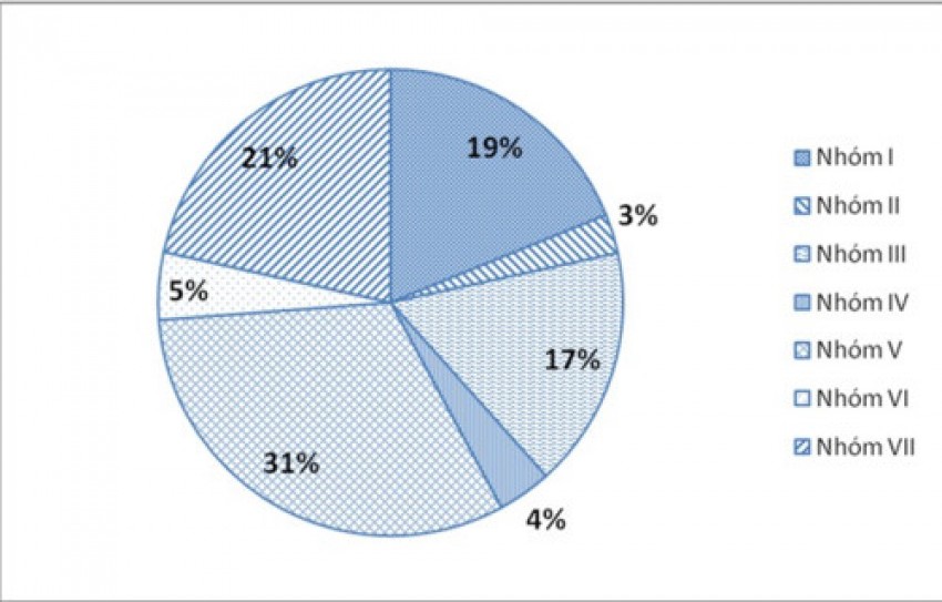 | Tỷ lệ các nhóm ngành đào tạo năm học 2017-2018. Nguồn: Báo cáo của Vụ Giáo dục Đại học, 2018 |