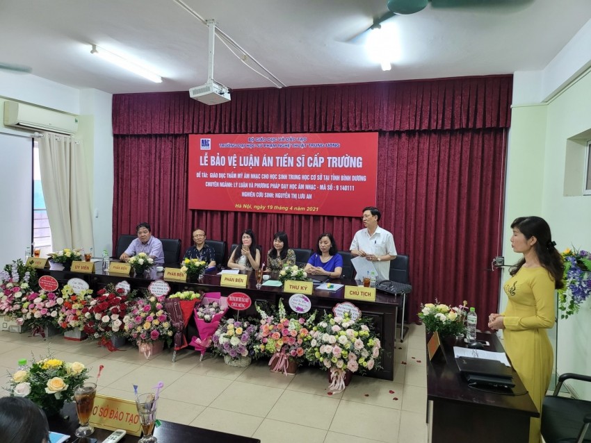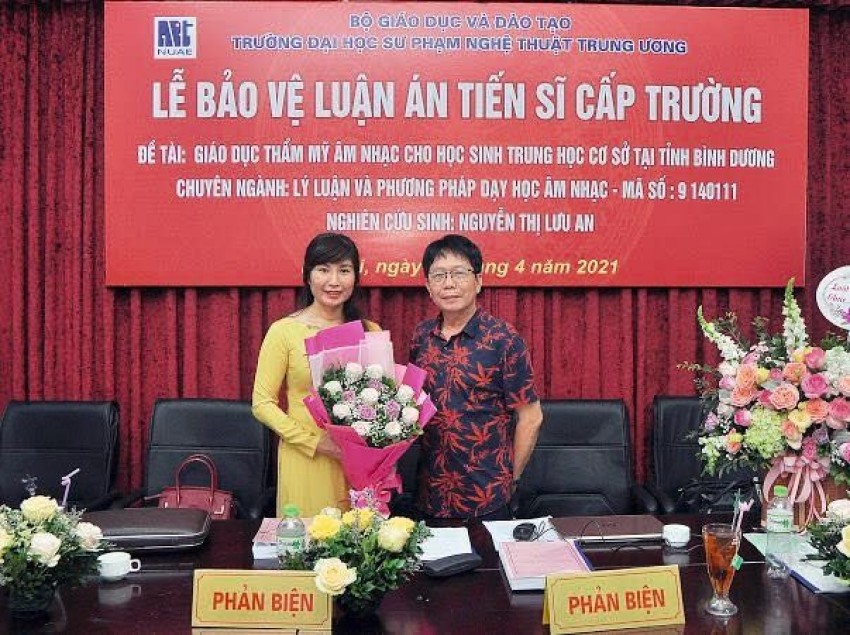 Luận án “Giáo dục thẩm mỹ âm nhạc cho học sinh trung học cơ sở tại tỉnh Bình Dương” đã được 7/7 thành viên Hội đồng có mặt đồng ý thông qua và đề nghị Trường ĐHSP Nghệ thuật TW công nhận trình độ và cấp bằng tiến sĩ cho NCS.