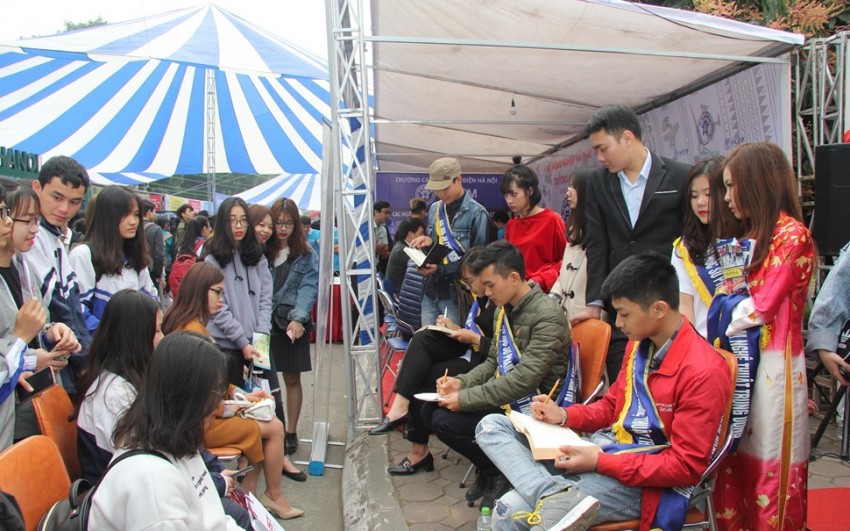 Tại khu vực tư vấn tuyển sinh của Trường ĐHSP Nghệ thuật TW, các em học sinh THPT đã được cán bộ tư vấn của Nhà trường giải đáp những câu hỏi về điều kiện xét tuyển cũng như các môn thi, khối thi vào trường. Nhận được sự tận tình của cán bộ tuyển sinh, các em học sinh đã mạnh dạn chia sẻ niềm yêu thích đối với các ngành học của trường; có nhiều em đã đăng ký hồ sơ ngay tại bàn tư vấn. Hi vọng rằng, việc đẩy mạnh hoạt động tư vấn tuyển sinh và hướng nghiệp của Nhà trường có thể góp phần tìm kiếm, khích lệ những tài năng nghệ thuật.