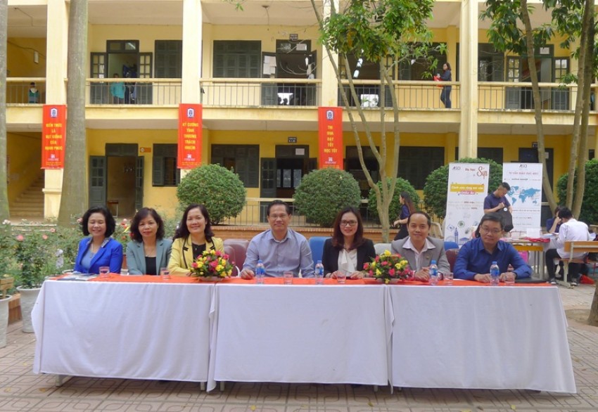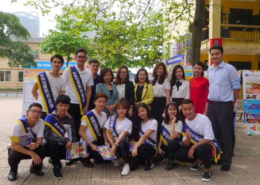 chụp ảnh lưu niệm cùng Ban Giám hiệu Trường THPT Tây Hồ tại Ngày hội Tư vấn tuyển sinh - hướng nghiệp năm 2018