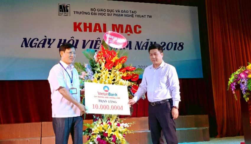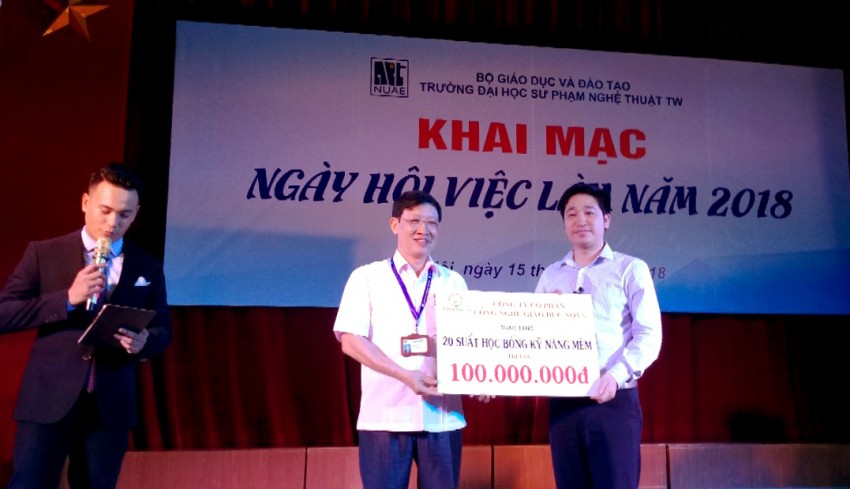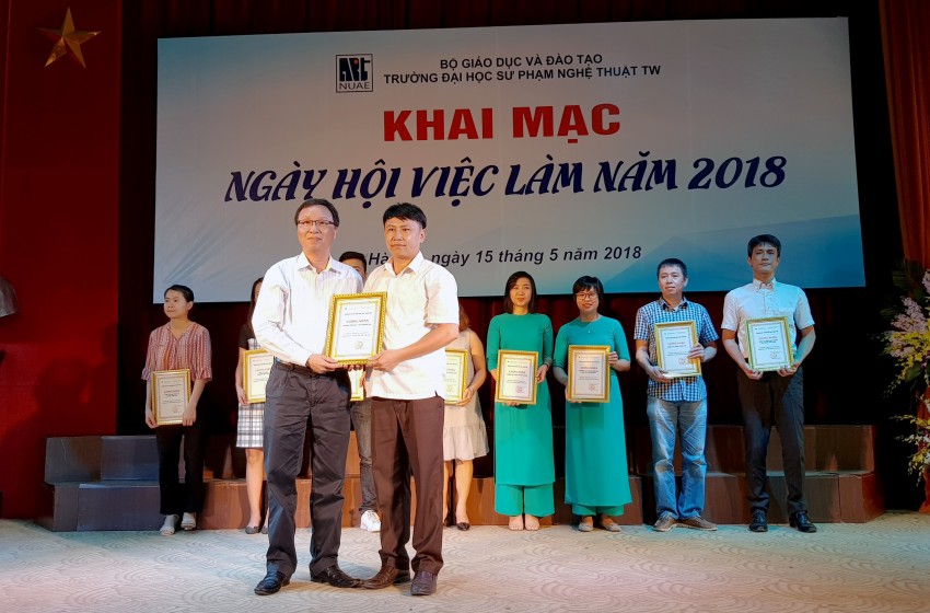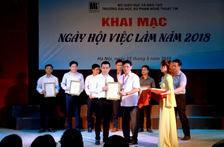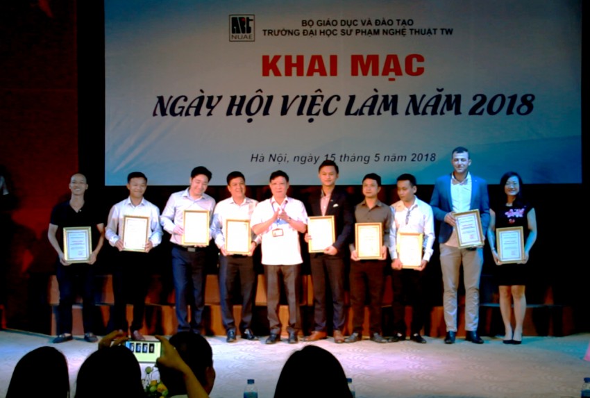 Cũng trong dịp này, đại diện các nhà tuyển dụng trao học bổng cho sinh viên Nhà trường và nhận giấy chứng nhận tham dự ngày hội của Trường ĐHSP Nghệ thuật TW.