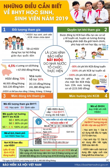 Ngày 5/9/2019, hơn 20 triệu học sinh, sinh viên trên cả nước bước vào năm học mới 2019 - 2020. Đồng hành, tiếp sức với thế hệ trẻ là chính sách bảo hiểm y tế (BHYT) đầy nhân văn, ý nghĩa của Nhà nước mà mỗi học sinh, sinh viên nên biết để được bảo vệ, chăm sóc sức khỏe cho bản thân trong hành trình tìm kiếm, bồi dưỡng tri thức.