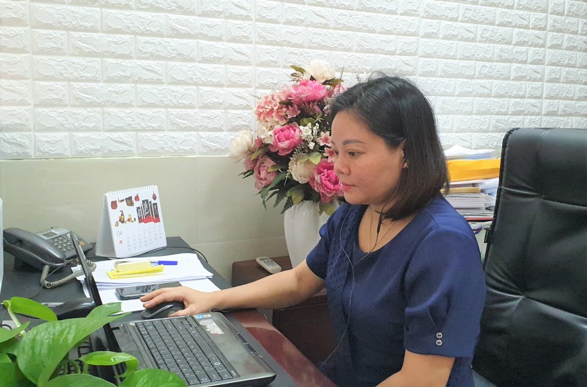 ThS. Trịnh Thị Thanh – Phó Bí thư Đảng ủy, Trưởng phòng Tổ chức – Hành chính tham dự Hội nghị trực tuyến việc công bố quyết định bổ nhiệm chức danh Lãnh đạo của Khoa VHNT