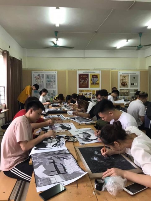 Sinh viên khối ngành Mỹ thuật học môn chuyên ngành.
