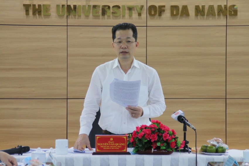 Sau khi nghe ý kiến phát biểu, thảo luận của các đồng chí trong Đoàn công tác Thành ủy và Ban Thường vụ Đảng ủy ĐHĐN, Phó Bí thư Thường trực Thành ủy Nguyễn Văn Quảng đã ghi nhận, đánh giá cao những kết quả của Đảng bộ ĐHĐN, đặc biệt là tiềm lực, sự phát triển độ ngũ cán bộ, giảng viên, kết quả kiểm định giáo dục, số công trình nghiên cứu và công bố khoa học và những kết quả nổi bật, toàn diện đưa ĐHĐN phát triển là ĐH vùng trọng điểm quốc gia được xếp hạng trong top ĐH hàng đầu Việt Nam vàó uy tín, vị thế quốc tế. Phó Bí thư thường trực Thành ủy nhất trí với những định hướng phát triển của ĐHĐN theo Chiến lược tổng thể đến năm 2025, tầm nhìn đến năm 2035, đồng thời lưu ý ĐHĐN cần tiếp tục nghiên cứu, xây dựng chiến lược, kế hoạch triển khai thực hiện Nghị quyết số 43 của Bộ Chính trị, quan tâm đào tạo nhân lực chất lượng cao, các lĩnh vực mũi nhọn (Công nghệ thông tin, Công nghệ Sinh học, Tự động hóa, Ứng dụng công nghệ cao trong nông nghiệp, Vật liệu mới…), gắn đào tạo với ứng dụng hiệu quả để tiếp tục khẳng định vị thế của ĐHĐN đóng góp tích cực cho thành phố cũng như khu vực miền Trung-Tây Nguyên và cả nước.