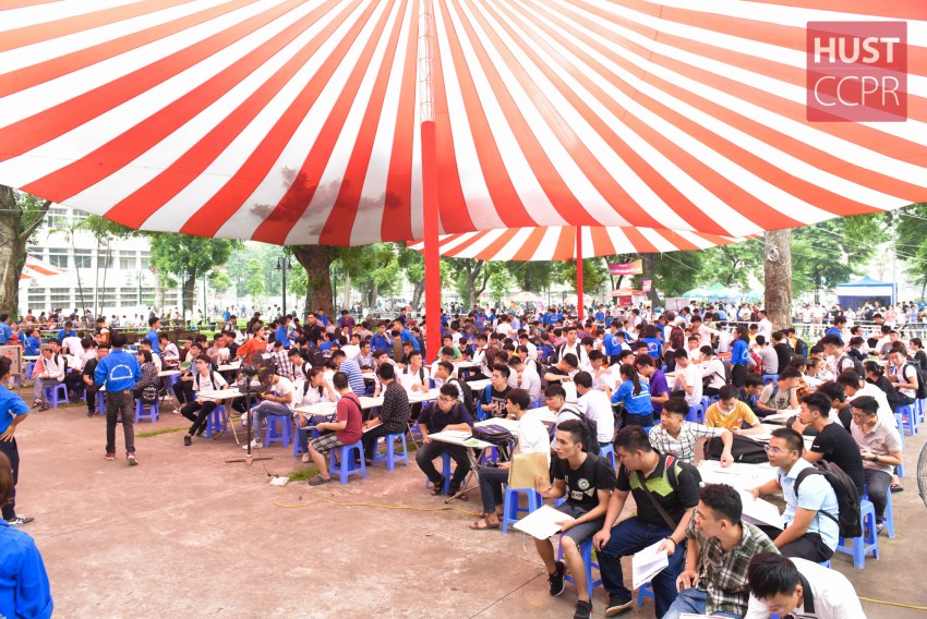 Nhằm tạo điều kiện thuận lợi cho các tân sinh viên nhập học, Trường ĐHBK Hà Nội đã xây dựng kết hoạch, bố trí hội trường rộng rãi để tiếp đón và tạo điều kiện cho các em có thể làm thủ tục nhanh chóng, đơn giản nhất. Năm nay, Trường cho các em đăng ký nhập học trực tuyến qua cổng thông tin đào tạo của Trường, giúp các em chuẩn bị tốt hồ sơ nhập học, tránh tình trạng xếp hàng chờ đợi lâu. Đối với những em chưa kịp đăng ký trực tuyến, Trường cũng hỗ trợ tối đa giúp các em hoàn thiện hồ sơ.