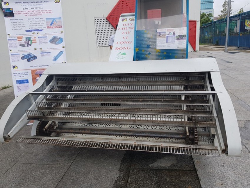 Nhóm sinh viên gồm: Nguyễn Văn Thịnh, Nguyễn Thành Tâm, Nguyễn Ngọc Huynh, Nguyễn Quý Phi đến từ Khoa Cơ khí Giao thông, trường Đại học Bách khoa, Đại học Đà Nẵng, đã nghiên cứu ra phương tiện thu gom rác bãi biển. Theo bạn Nguyễn Văn Thịnh, trưởng nhóm cho biết, xuất phát từ vấn đề ô nhiễm rác thải tại các bãi biển trên địa bàn thành phố (nhất là rác thải nhựa sau những lần sóng biển tấp vào bờ), nhóm đã nghiên cứu chế tạo thiết bị thu gom rác thải trên bờ biển nhằm hỗ trợ các đơn vị có thiết bị máy móc đơn giản nhưng tăng hiệu quả thu gom rác.