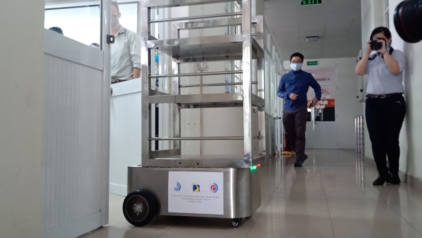 Trong giai đoạn cao điểm phòng chống Covid-19, các cán bộ khoa học, giảng viên Khoa Cơ khí của Trường ĐH Bách khoa-ĐHĐN đã phát kiến và sáng chế thành công sản phẩm công nghệ hữu ích Robot phục vụ bệnh nhân trong các khu cách ly (Robot BK-AntiCovid) tại Bệnh viện Phụ sản-Nhi Đà Nẵng từ tháng 3/2020. Robot có tính năng vận chuyển nhu yếu phẩm như: thức ăn, đồ dùng, thuốc men… đưa vào khu vực cách ly phục vụ cho người bệnh trong đó chủ yếu là các sản phụ, trẻ sơ sinh là đối tượng cần chăm sóc đặc biệt. Sản phẩm có ý nghĩa thực tiễn, đáp ứng yêu cầu giảm thiểu sự tiếp xúc để phòng tránh lây nhiễm chéo giữa bệnh nhân và nhân viên y tế.