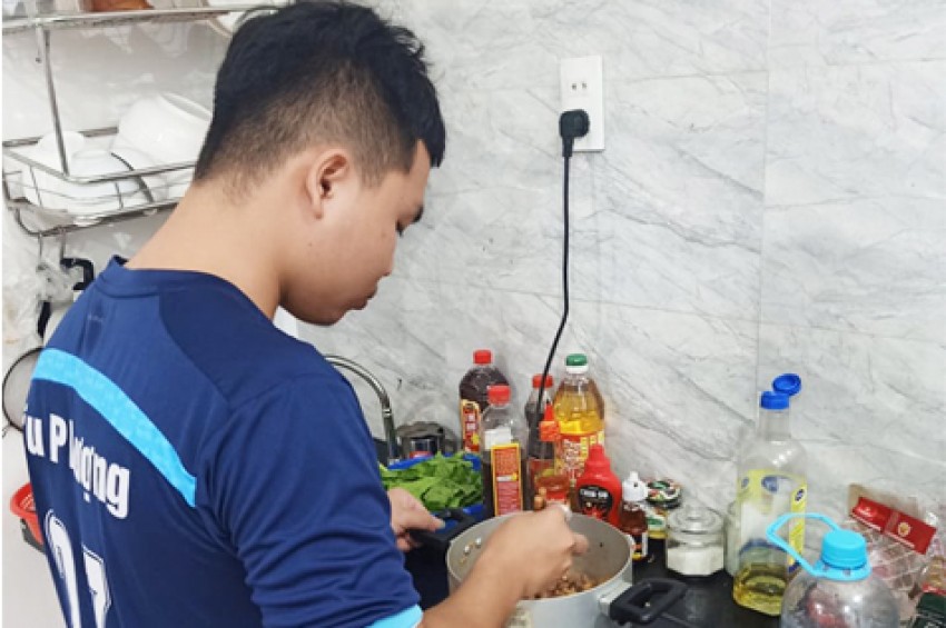 Đặc biệt, không ít bạn nữ lẫn nam đều trở thành “nữ công gia chánh” của gia đình. Phần lớn các bạn đều từ các tỉnh, thành khác về quê tránh dịch, một số khác còn ở lại trọ hay kí túc xá. Họ dành thời gian cho việc nấu nướng, làm bánh và chế biến ra những món ăn độc lạ mùa dịch. “Thực hiện những chỉ thị của Chính phủ nên tụi mình phải tự lực cánh sinh trong khâu bếp núc. Có khi sau đợt dịch này, mình xin đi làm thêm Đầu bếp ở các nhà hàng.” – bạn Đậu Anh Phượng (sinh viên K13) vui vẻ cho biết.
