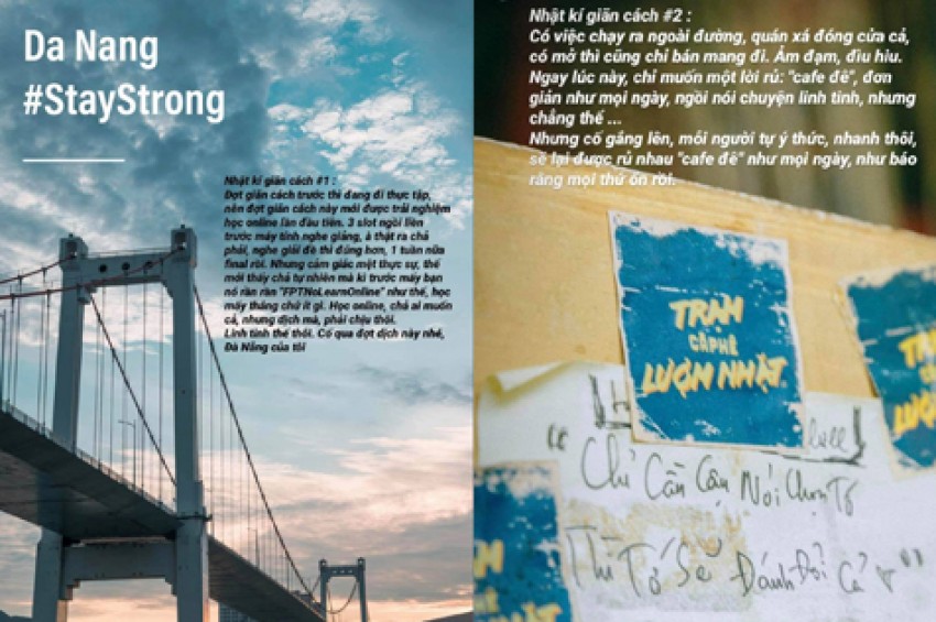 Khoảng thời gian chống dịch có lẽ là những ngày khó quên đối với mọi người, trong đó có sinh viên trường Đại học FPT Đà Nẵng. Để lưu lại từng phút giây này, một bạn sinh viên ngành Kỹ thuật phần mềm đã dành ra những khoảng lặng trong ngày để lưu lại những dòng “Nhật ký giãn cách”. Dù là những dòng ngắn ngủi nhưng chất chứa đầy tâm sự và những lời chúc sức khỏe, bình an đến tất cả mọi người, đặc biệt là đội ngũ y bác sĩ đang căng mình chống dịch. Đối với mỗi cá nhân, trong thời gian này, ở yên trong nhà cũng là đóng góp một phần công sức cho toàn xã hội đẩy lùi dịch bệnh.