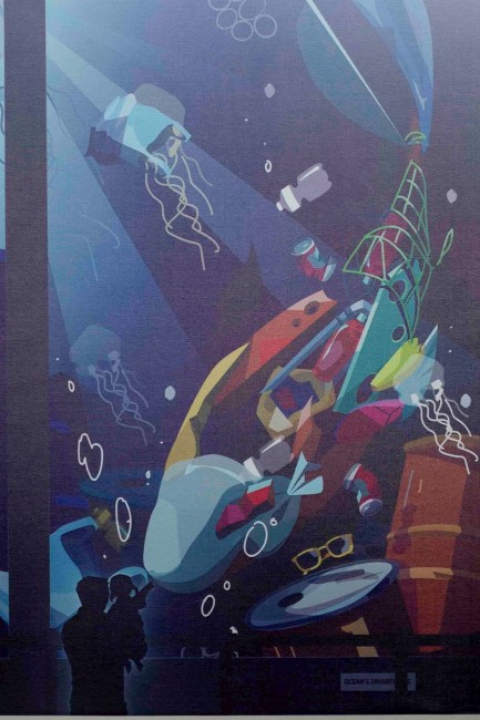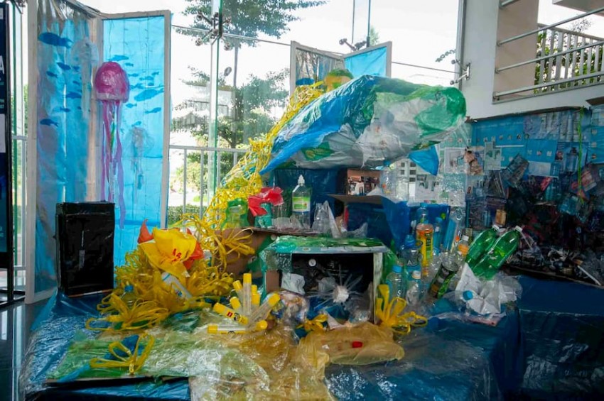 Không chỉ dừng lại ở các bức vẽ minh họa về tác động của rác thải nhựa đến con người, các bạn sinh viên tài năng còn dựng và trưng bày các mô hình về thế giới thủy sinh bằng rác thải từ nhựa.